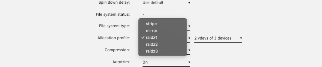 Planen Sie das Layout Ihres Pools, um Ihren Anforderungen und zukünftigem Wachstum gerecht zu werden. Im Gegensatz zum Unraid array können Sie mit dem WebGUI keine einzelne Festplatte zu einem vorhandenen vdev hinzufügen.