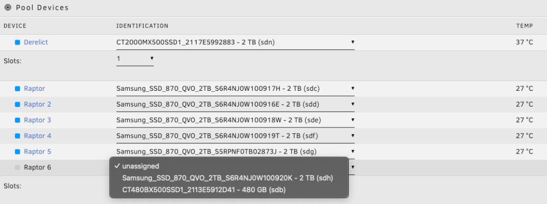 3. Klicken Sie auf einen leeren Slot unter Array Devices.